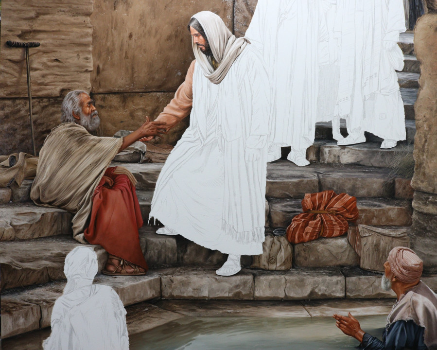 Aprenda a fazer essa pintura de “Você quer ser curado?”” conforme o relato da bíblia em João 5:1-15 em vídeo aulas passo a passo e detalhadas com o artista plástico Elton Brunetti.