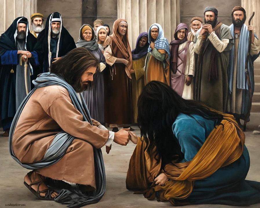 João 8:2-11 ; a mulher pega em um ato de adultério.