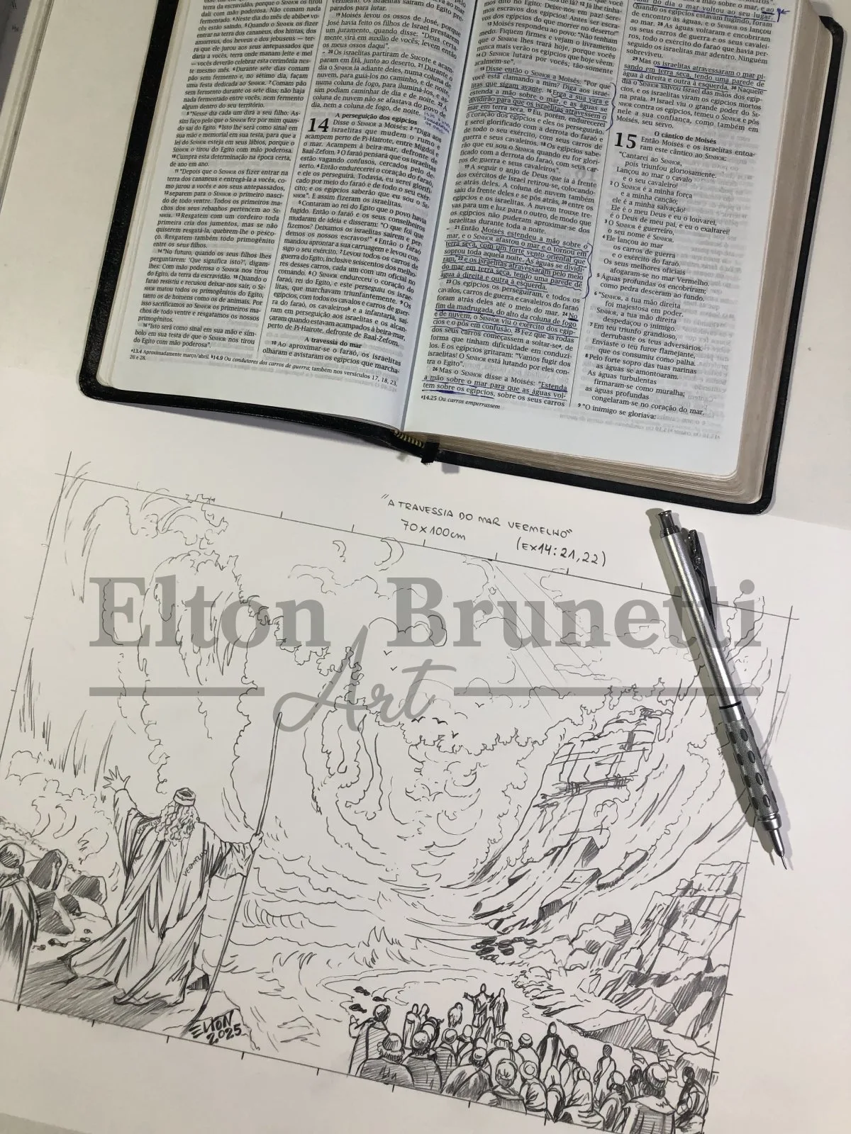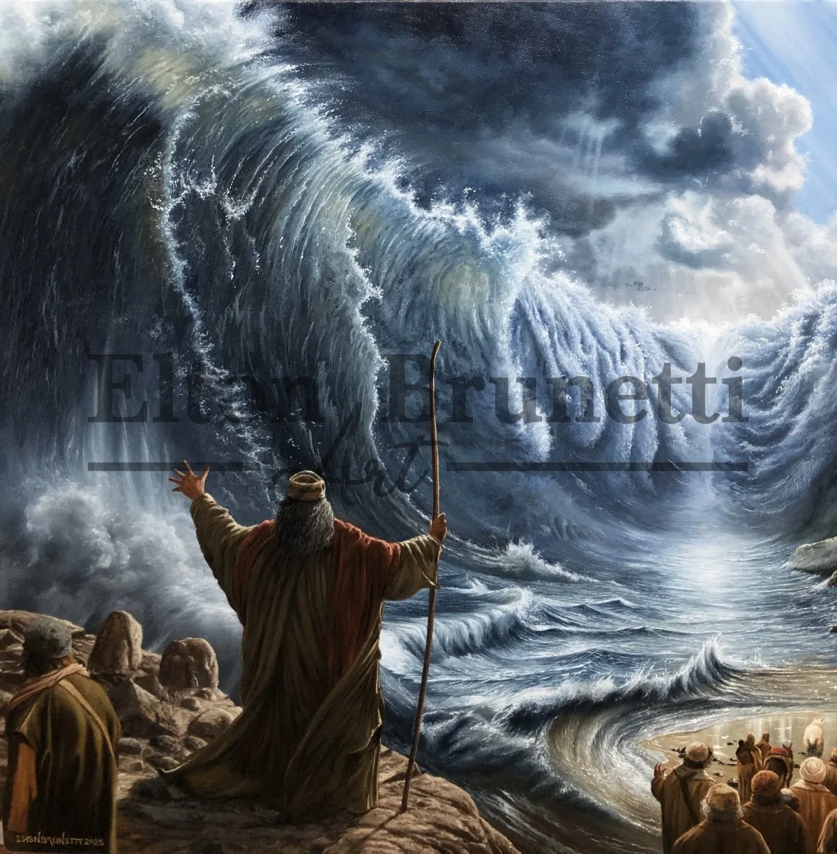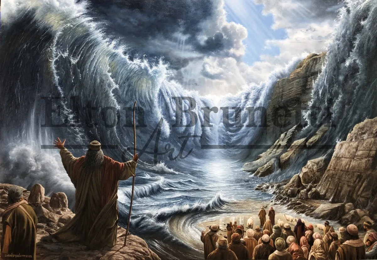 Quadro “A travessia do mar vermelho”, pintado pelo artista plástico Elton Brunetti, técnica Óleo Sobre Tela, medindo 70 x 100 cm.