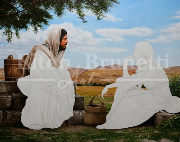 Quadro Jesus e a samaritana (joão 4), pintado pelo artista plástico Elton Brunetti, técnica Óleo Sobre Tela medindo 80 x 100 cm.